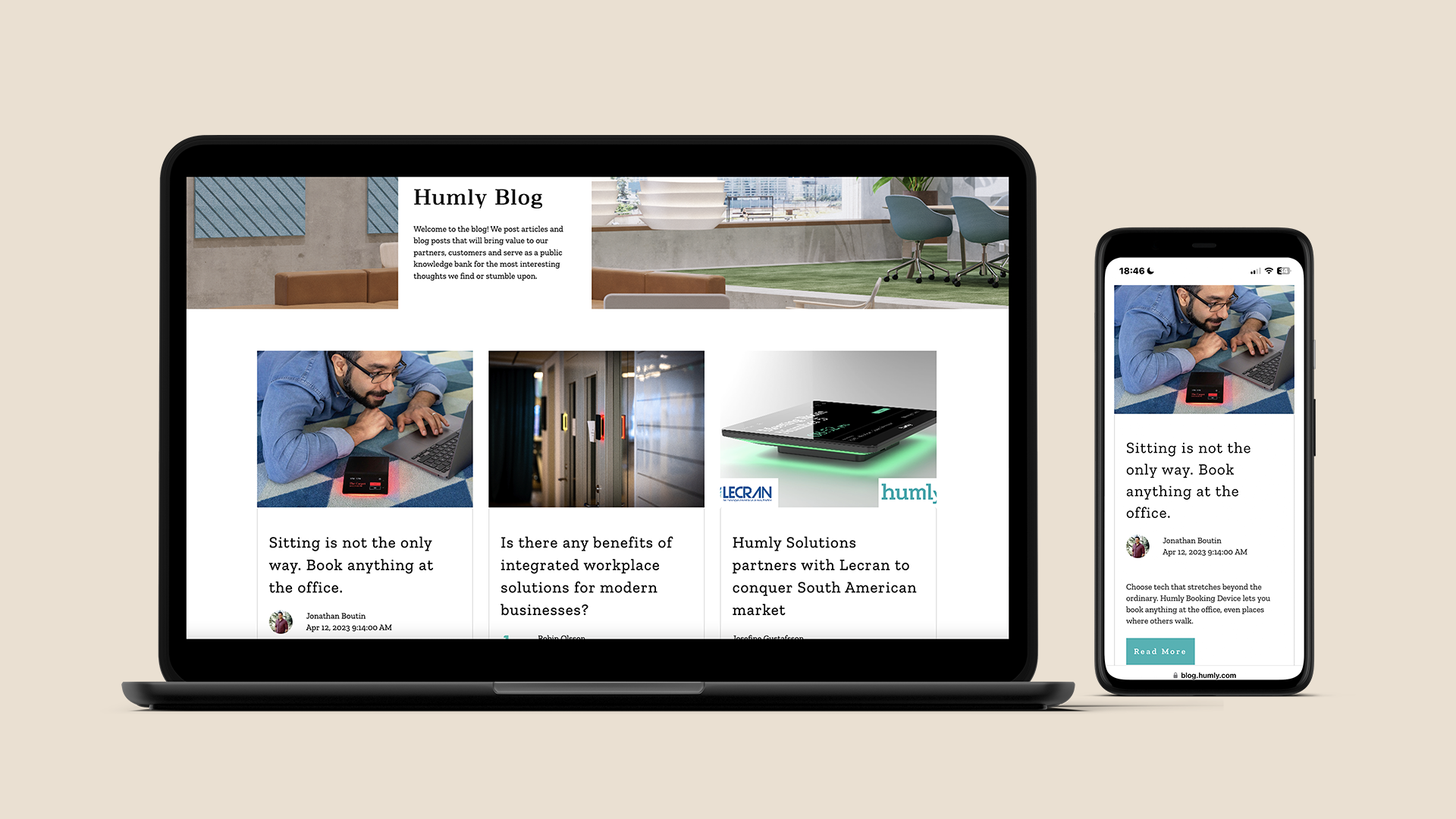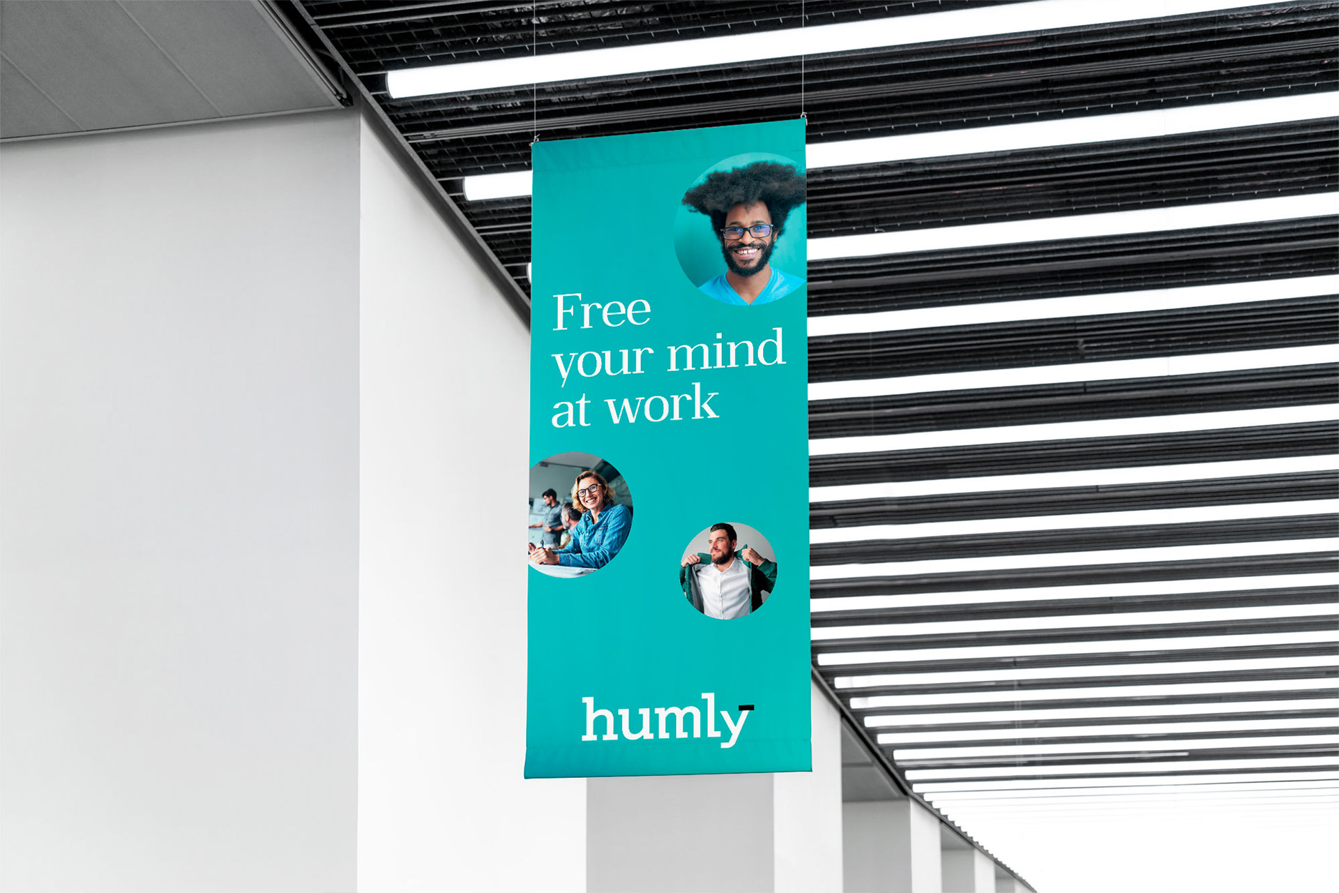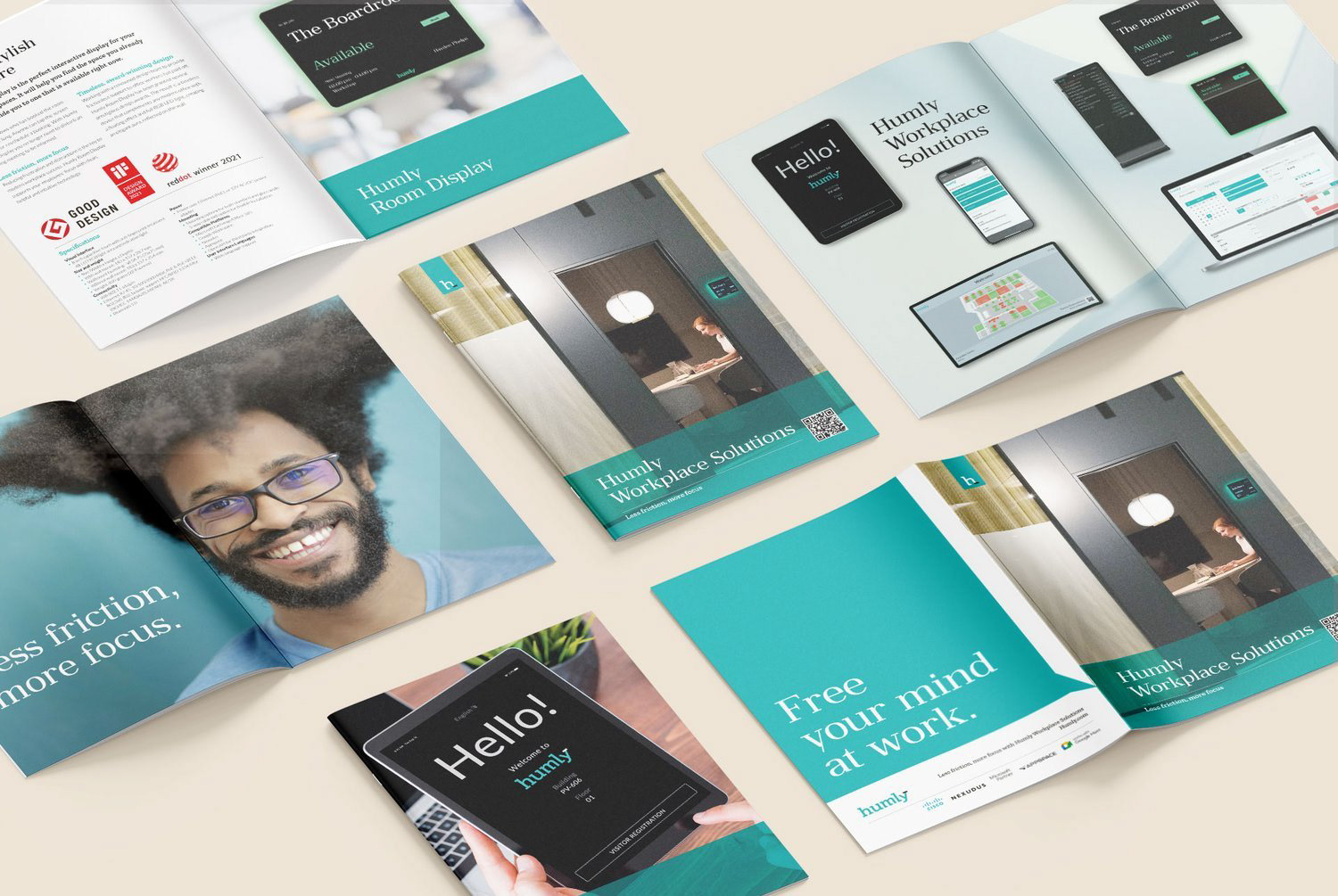 Humly – Workplace Solutions/Kampanj "Book anything at the office"/Annonsering Linkedin och blogg hemsida/Produktkatalog/Hanging rollup för mässa ISE/Monterdesign mässa ISE/Next State/Foto: Pernilla Pettersson