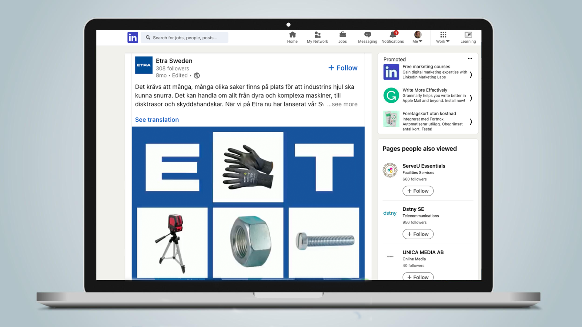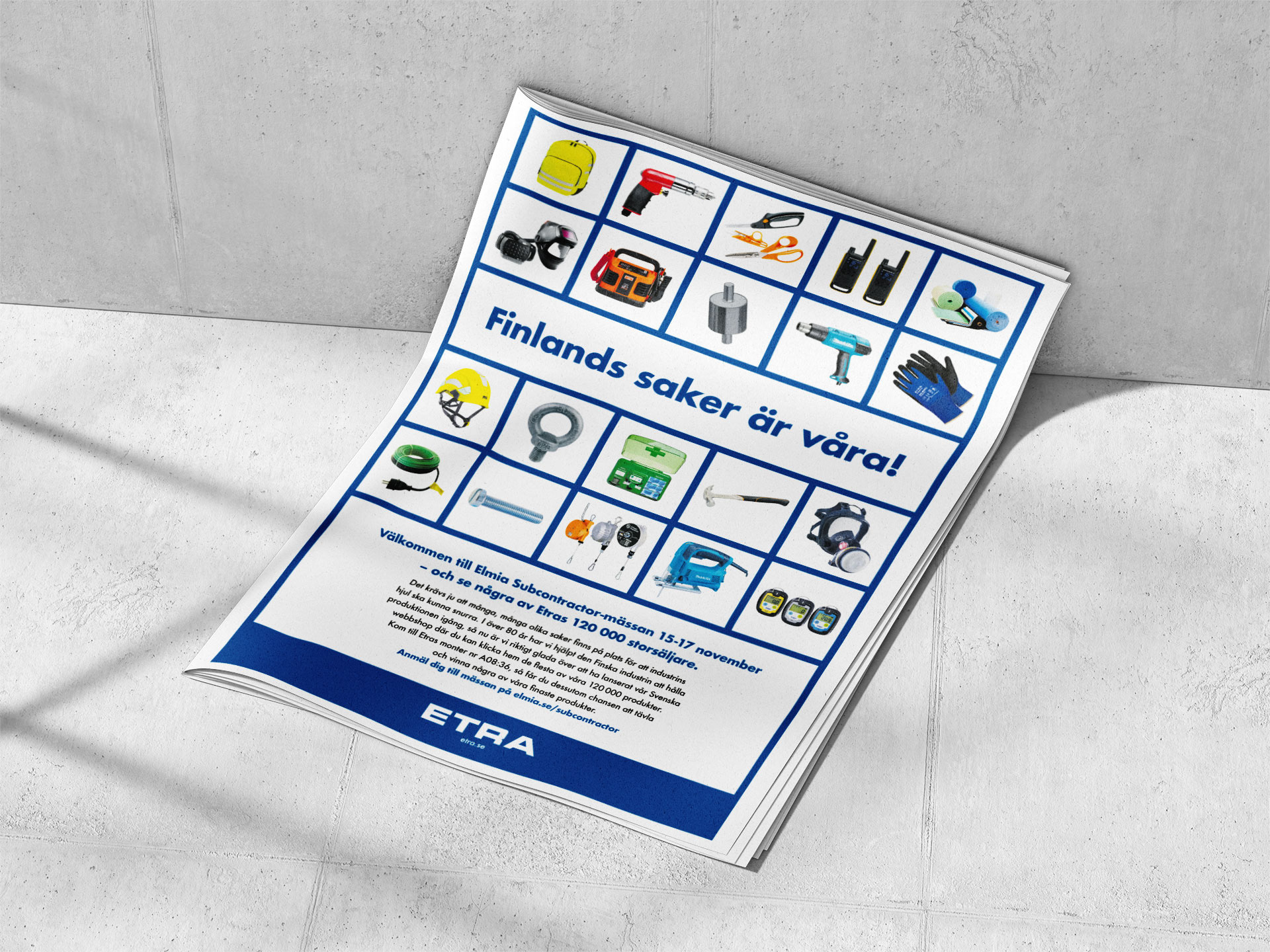 Etra – industriprodukter som tjänst, ett finskt företag med etablering i Sverige/Varumärkeskampanj/Annons SoMe/Film Elmiamässan/Printannons DI/Banner DI/Samarbete med AD Anders Eliasson/Next State
